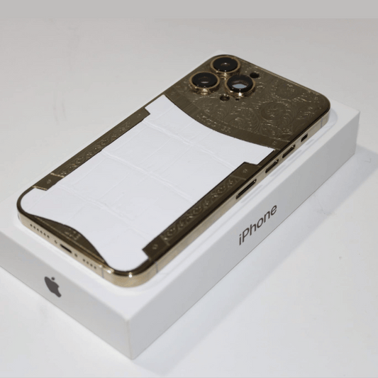 24k gold plated pure white genuine leather case for iPhone 13 Pro Max